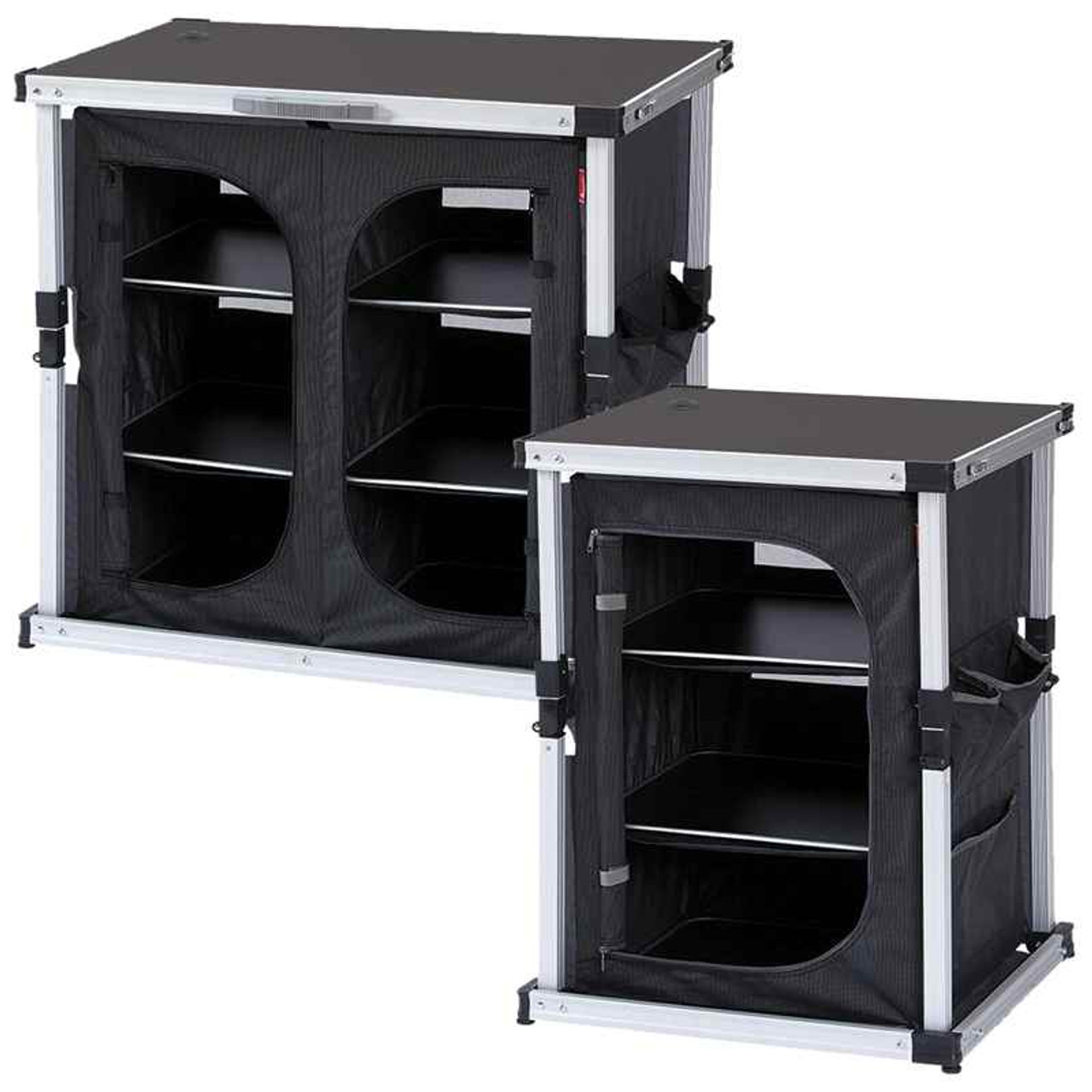 Choose between the Single Cupboard or the spacious Double Cupboard, both offering a sturdy 30kg maximum load. The strong shelves are perfect for storing anything from clothing and food to shoes, making it an ideal kitchen cabinet or bedroom organiser for your awning or tent. Both versions come complete with a handy storage bag.