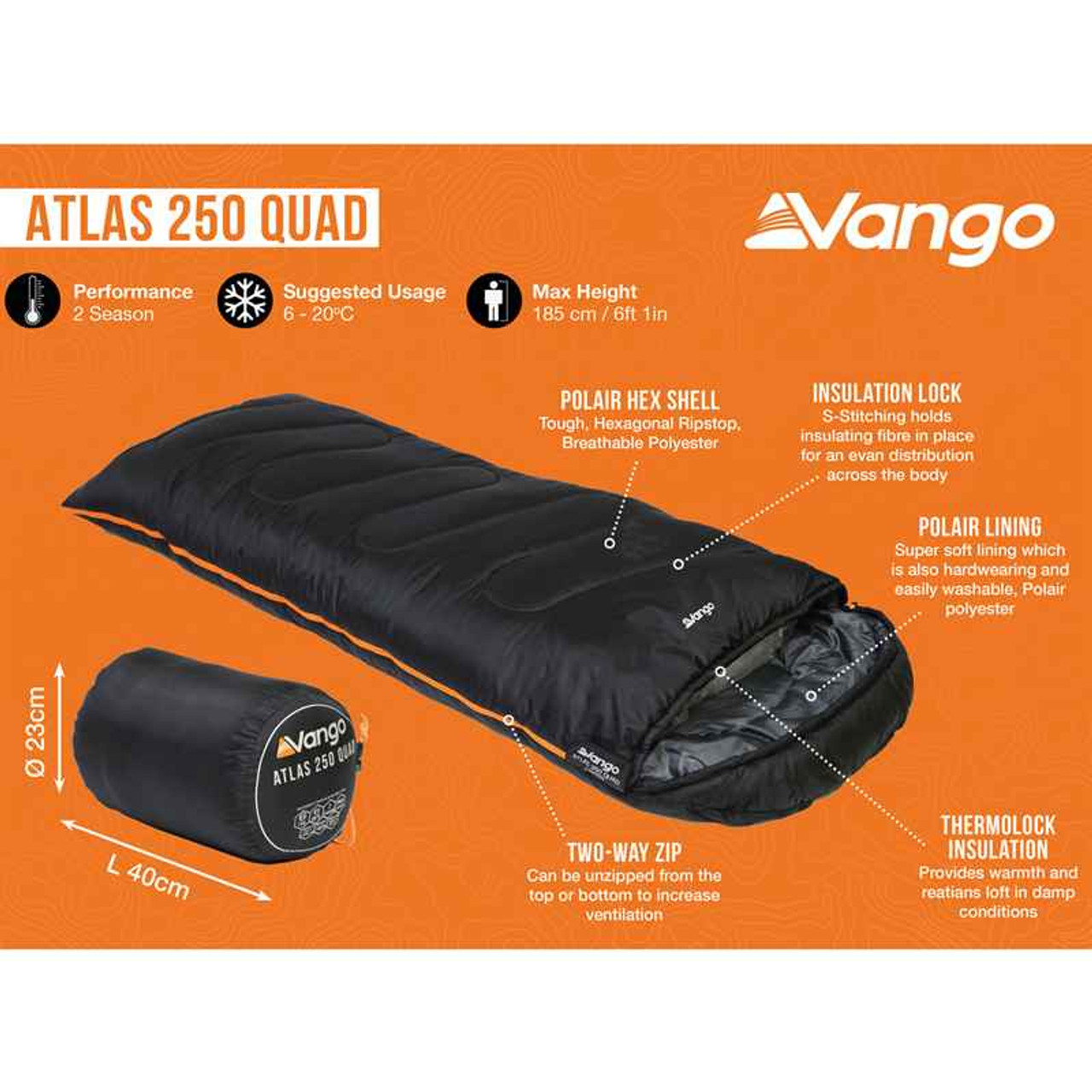 - Vango Atlas 250 Quad Sleeping Bag is sent on a next working day carrier