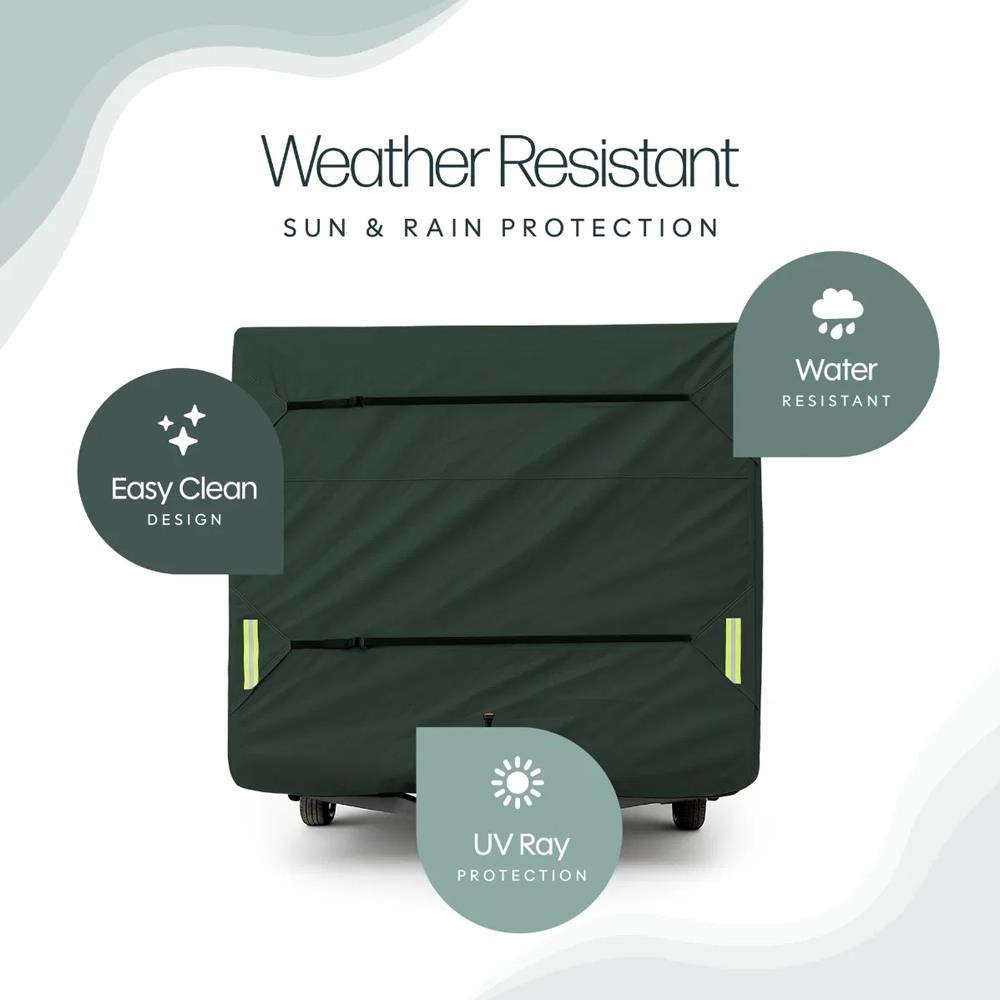 A key feature of this caravan cover is its premium fabric. Utilising breathable, water-resistant fabric that reduces interior mould, mildew and condensation build-up. With build-in UV resistance that protects your caravan's exterior from sun damage, helping to retain appearance and extends the life of your caravan. Comes complete with a hitch cover and storage bag to allow for conveniently packing away and protecting your caravan hitch from rust and wear.