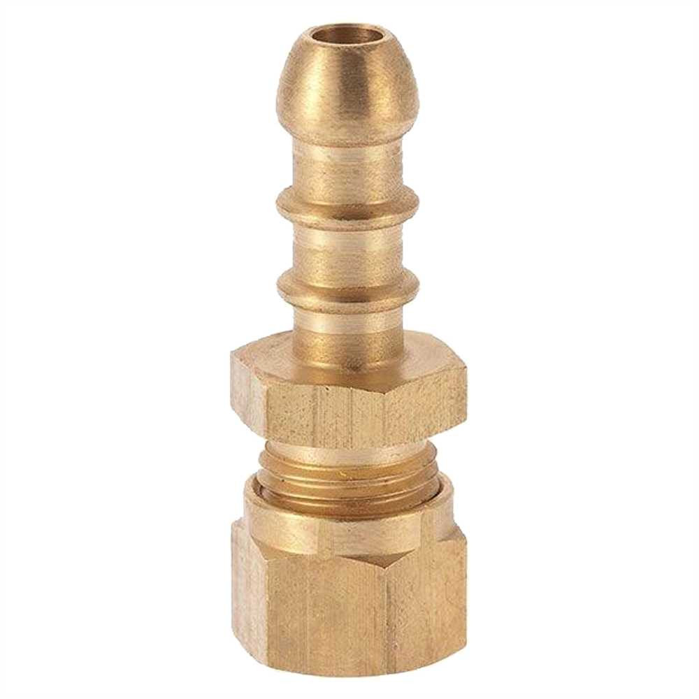 An 8mm (5/16") gas connector nozzle fitting for a copper to rubber hose connection, used in motorhomes and caravans.