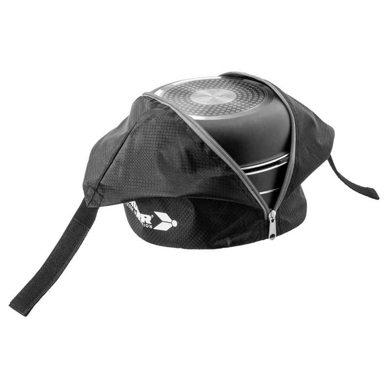 This 5pc stackable cookware set from Brunner is manufactured in a modern Stone Rock design, with a non-stick coating. Included is a removable handle and glass lid with a silicone rim to prevent noise and slippage. The set can be used on Ceramic, Gas, Induction and Electric hobs. When done, the pots and pans can be stacked and nested, perfect for storing in limited kitchen spaces such as in caravans or boat galleys.