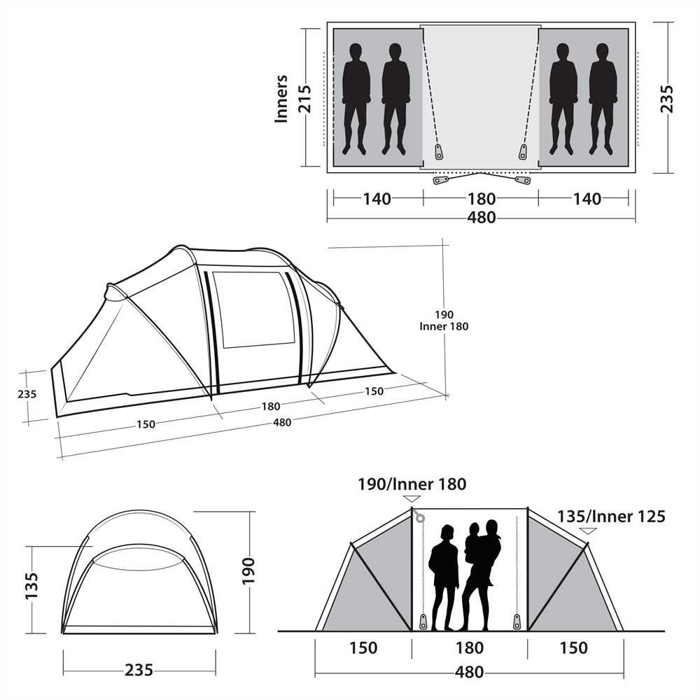 - Pre-attached luminous guylines ensure greater visibility at night and make pitching quick and straightforward.